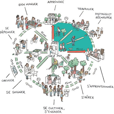 “Cidade em 15 minutos”: o conceito de Carlos Moreno, que está sendo implantado em Paris por Anne Hidalgo leva em consideração a configuração da cidade com o objetivo de melhorar o bem-estar da população. Imagem: Paris en Commun.
