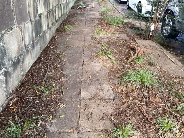 Calçada em zona residencial de Passo Fundo (RS). A calçada existe, porém as condições de manutenção e limpeza podem inviabilizar o seu uso. Foto: Ana Paula Wickert.